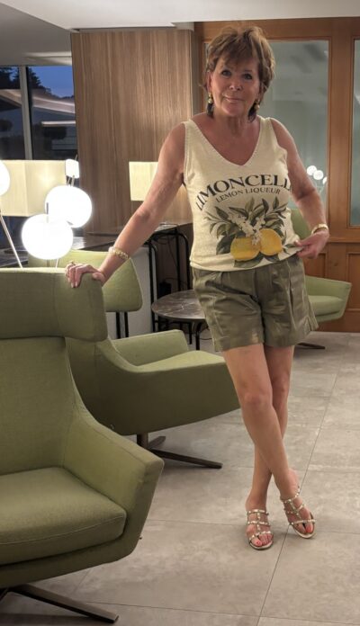Viele Grüße von den Zitronen aus Limone!!! Stricktop mit Goldfarbenen Fäden und mit Zitronen bedruckt.