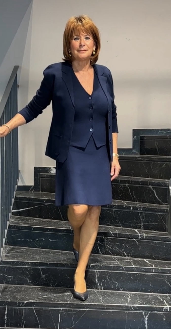Dreiteiliges Strickkostüm in edlem Nachtblau.