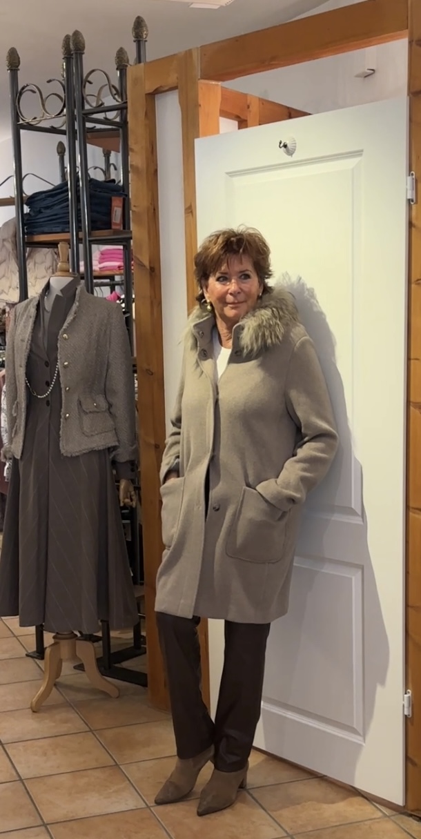 Leichter Übergangsmantel mit abknöpfbaren Kragen.