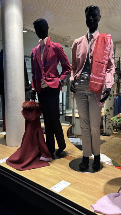 Der Beerenfarbene und der Rose – Blazer bestehen aus Cordsamt.