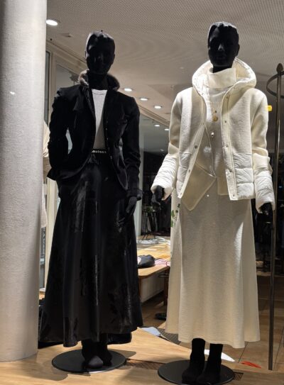 Die schwarze Samtjacke mit einer Pelzbordüre verträgt sich mit einem eleganten schwarzen Tellerrock genau so gut, wie zu einer schwarzen Lederhose mit Stiefeletten.
