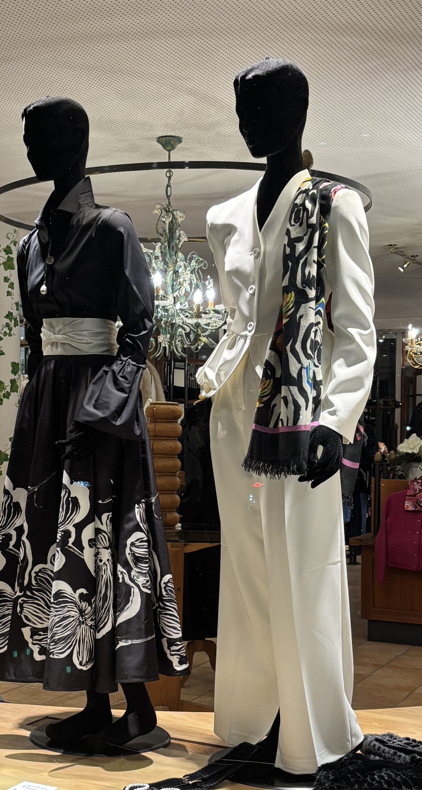 Den weißen Hosenanzug mit Schösschenjacke habe ich jetzt als Hochzeitsoutfit verkauft.
