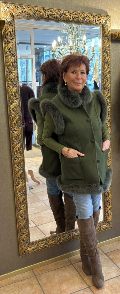 Die Pelzweste zum Wenden sieht toll zum passenden Pulli in der gleichen Farbe aus.