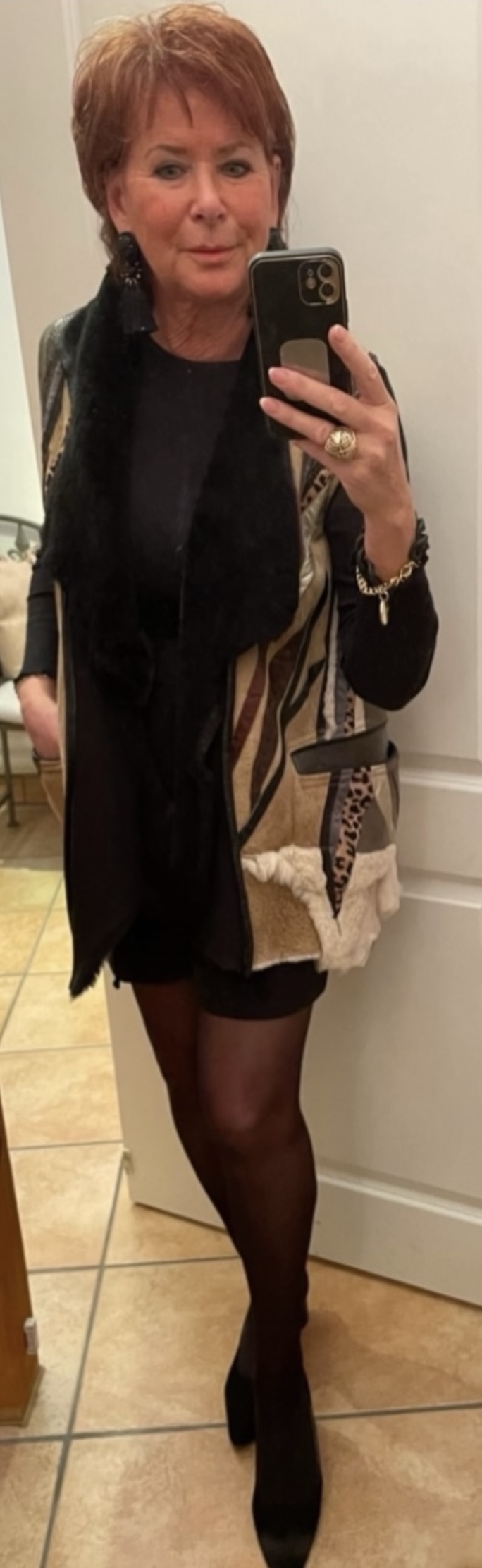 Auch zu Schwarz sieht die Patchwork–Weste toll aus.