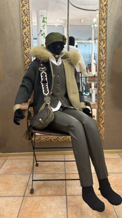 Mantel mit Kapuze zum Wenden und mit Pelzbesatz: