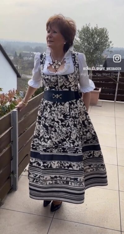 Das Dirndl ohne Schürze mit einem Miedergürtel in Dunkelblau.